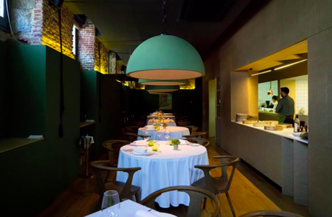 El proyecto del restaurante corre a cargo de dos estudios de arquitectura madrileños, studioD12 (www.studioD12.com) y Extudio (www.extudio.es). Basándose en las raíces del cocinero, se diseña un restaurante con varias zonas diferenciadas teniendo cada una de éstas un elemento representativo con denominación de origen manchega.
